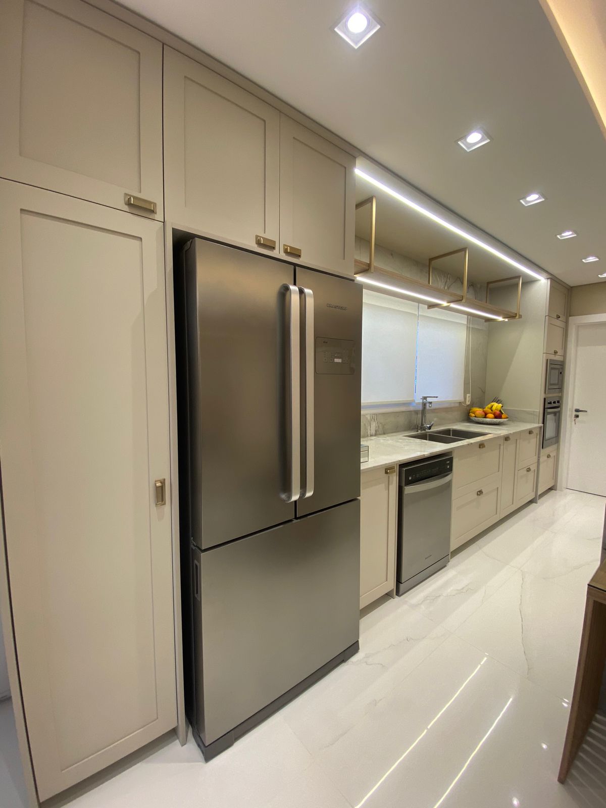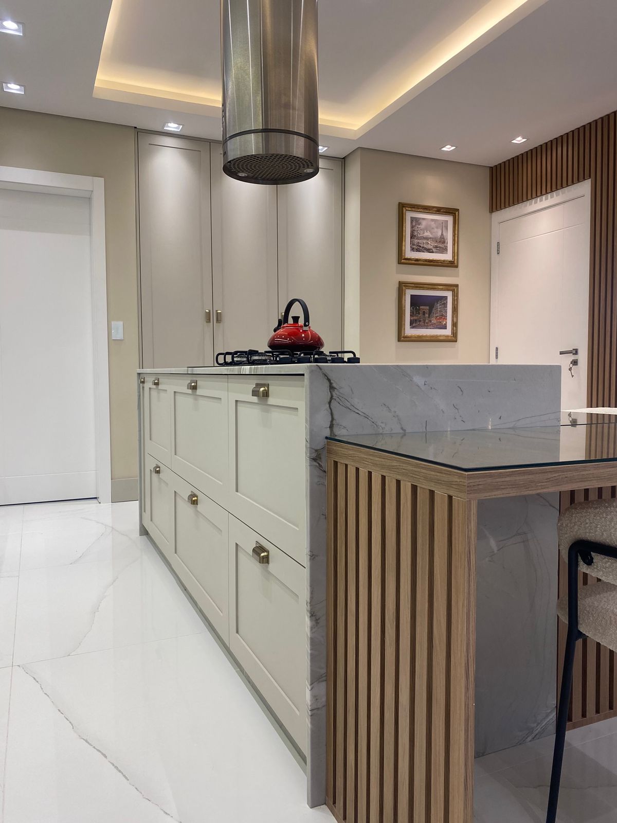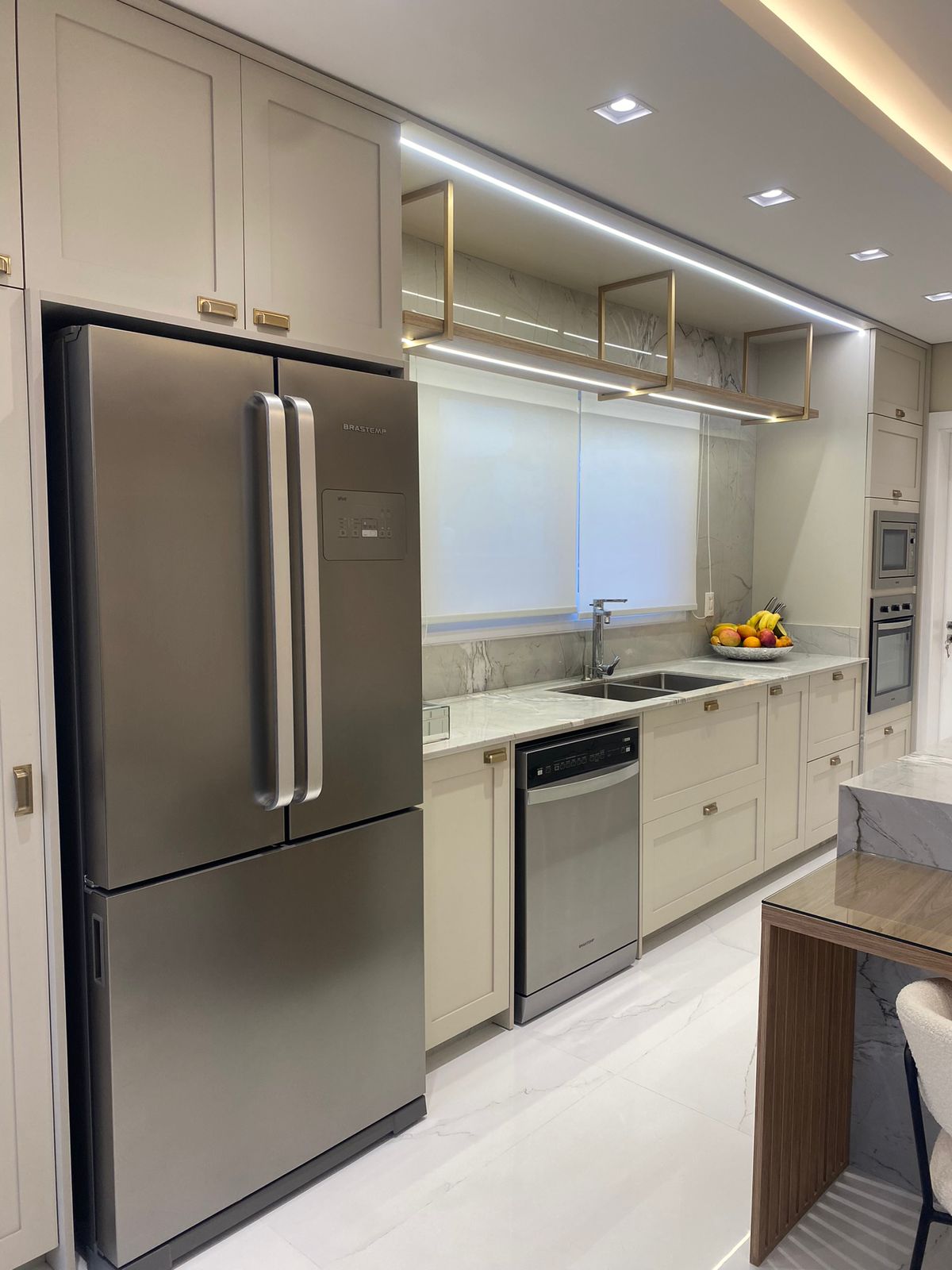 Cozinhas em estilo clássico estão em alta nos projetos de decoração. Um estilo que se tornou atemporal, aplicado nas cores, no provençal nas portas e nos puxadores em concha, torna um projeto muito elegantes e sofisticadas com tecnologia e amortecimento de ferragens atualizadas, aliando diversas tendências de design e eletrodomésticos tecnológico.