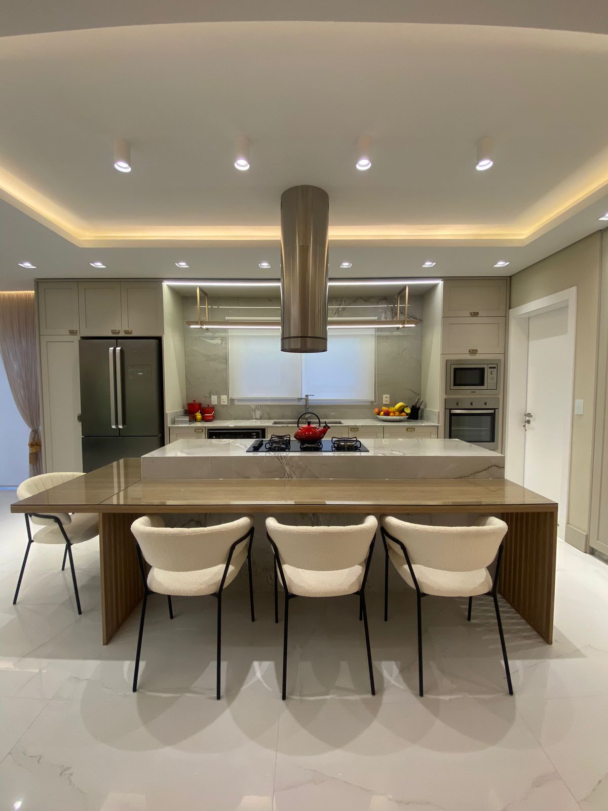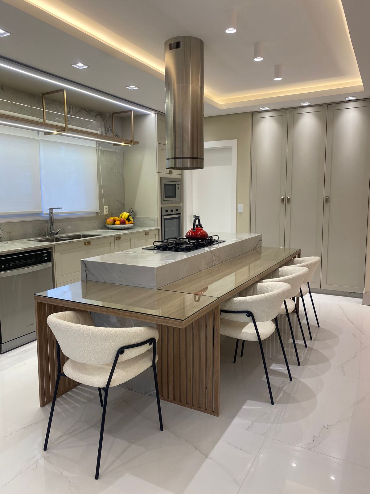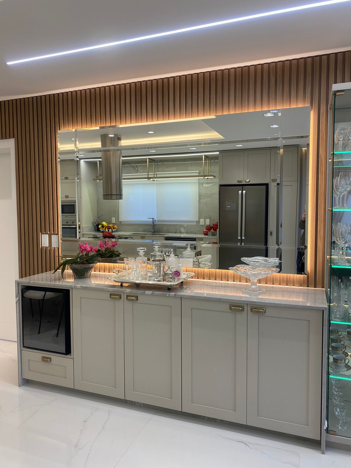 Cozinhas em estilo clássico estão em alta nos projetos de decoração. Um estilo que se tornou atemporal, aplicado nas cores, no provençal nas portas e nos puxadores em concha, torna um projeto muito elegantes e sofisticadas com tecnologia e amortecimento de ferragens atualizadas, aliando diversas tendências de design e eletrodomésticos tecnológico.